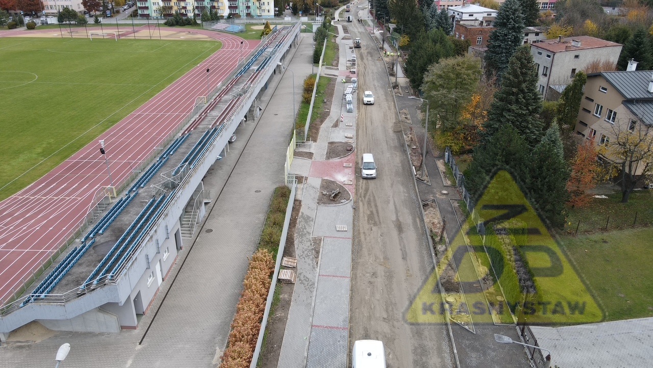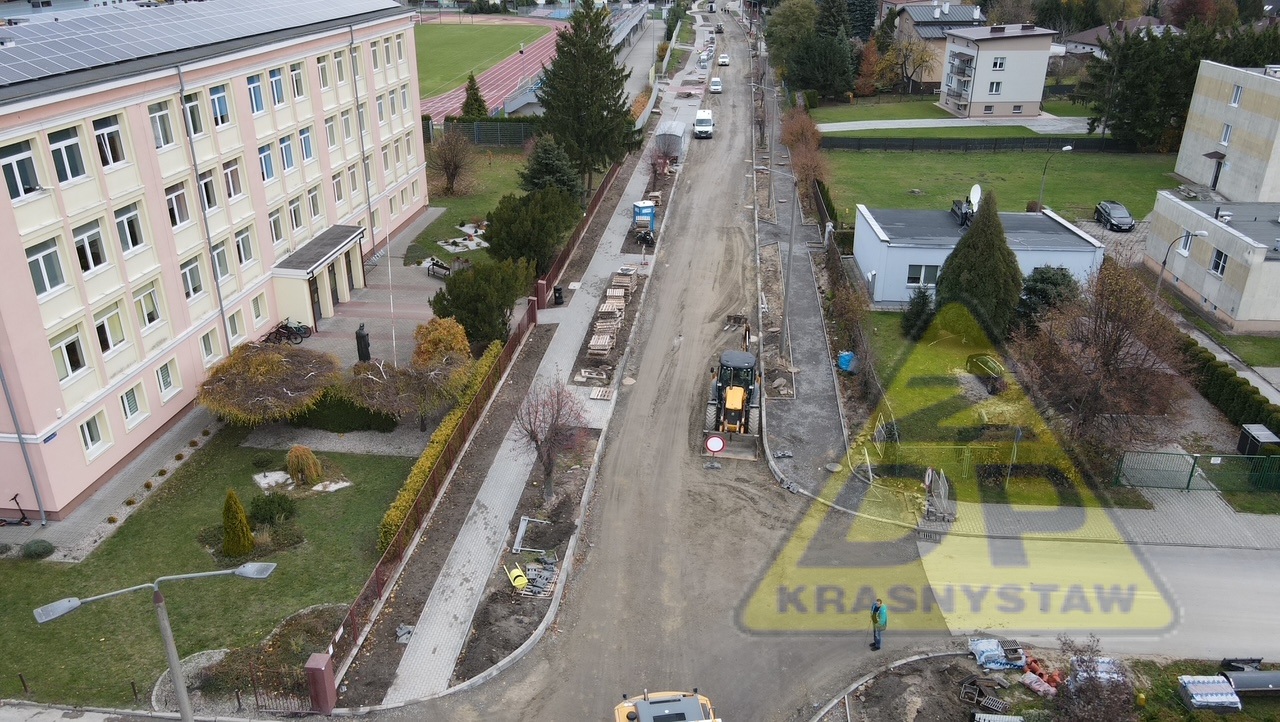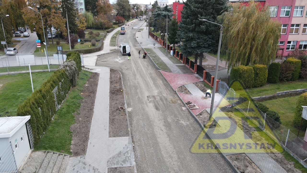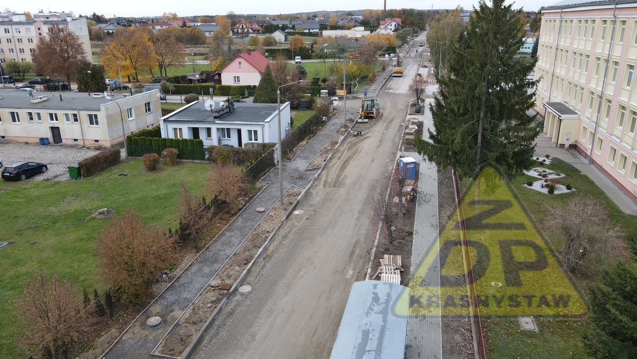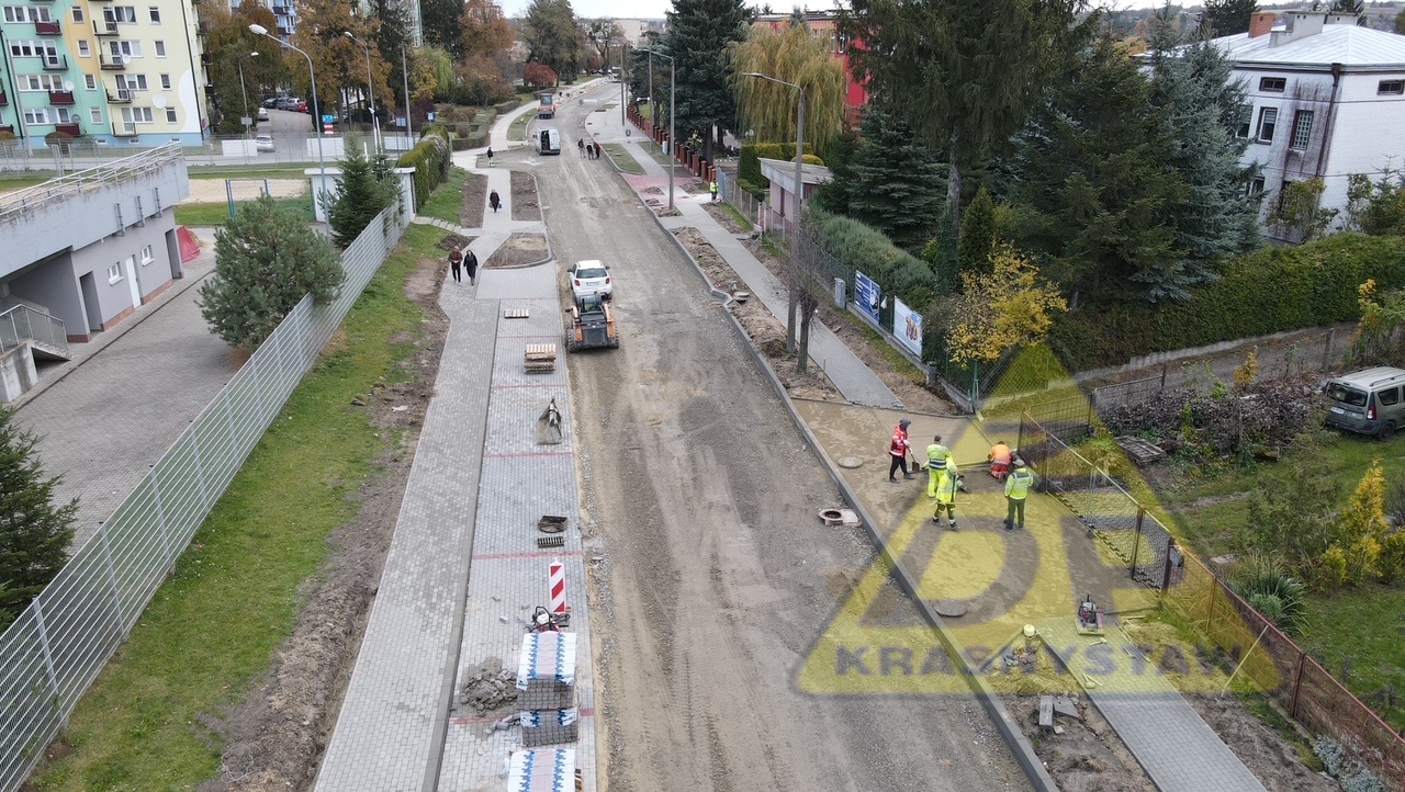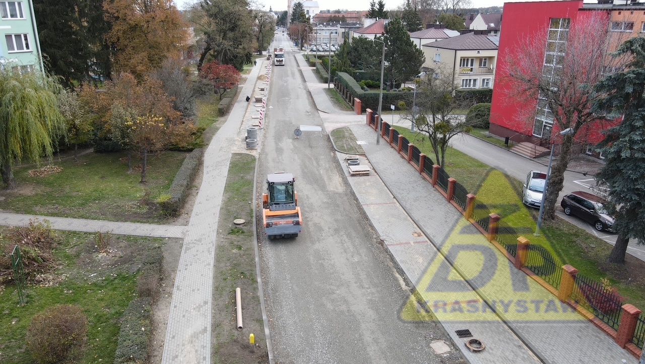 Trwają roboty budowlane w zakresie przebudowy ulicy Piłsudskiego nr 3121L w Krasnymstawie od km 0+387 (ul. Konopnickiej) do km 1+101 (ul. Graniczna) o dł. 0,714 km.